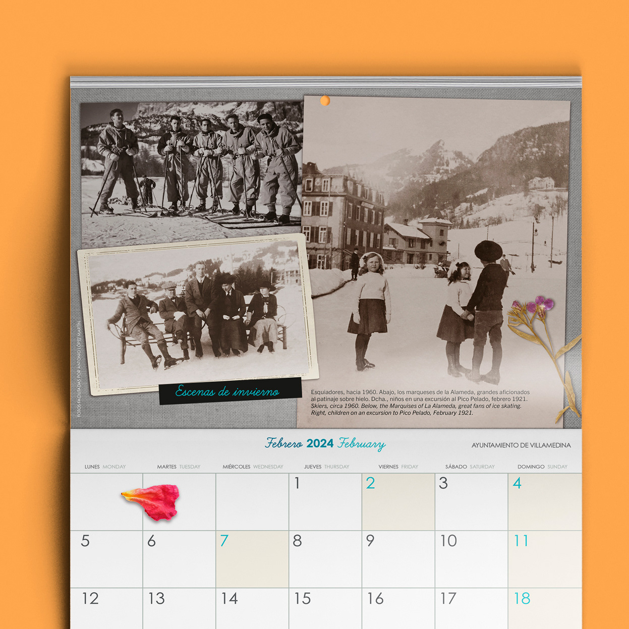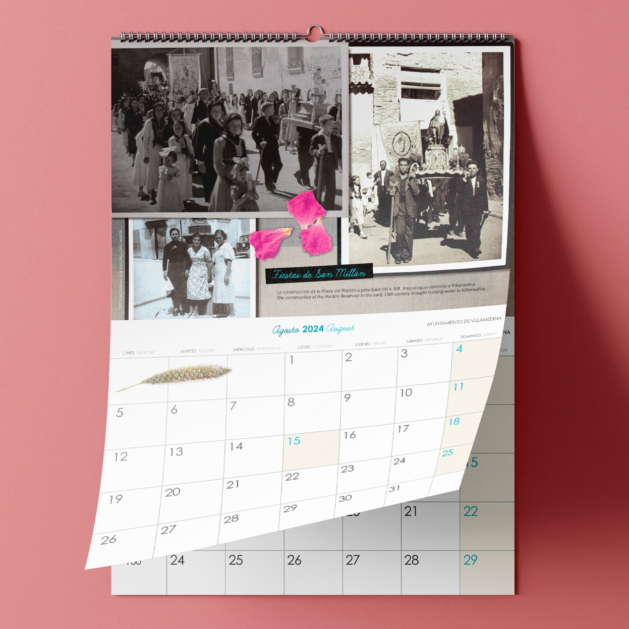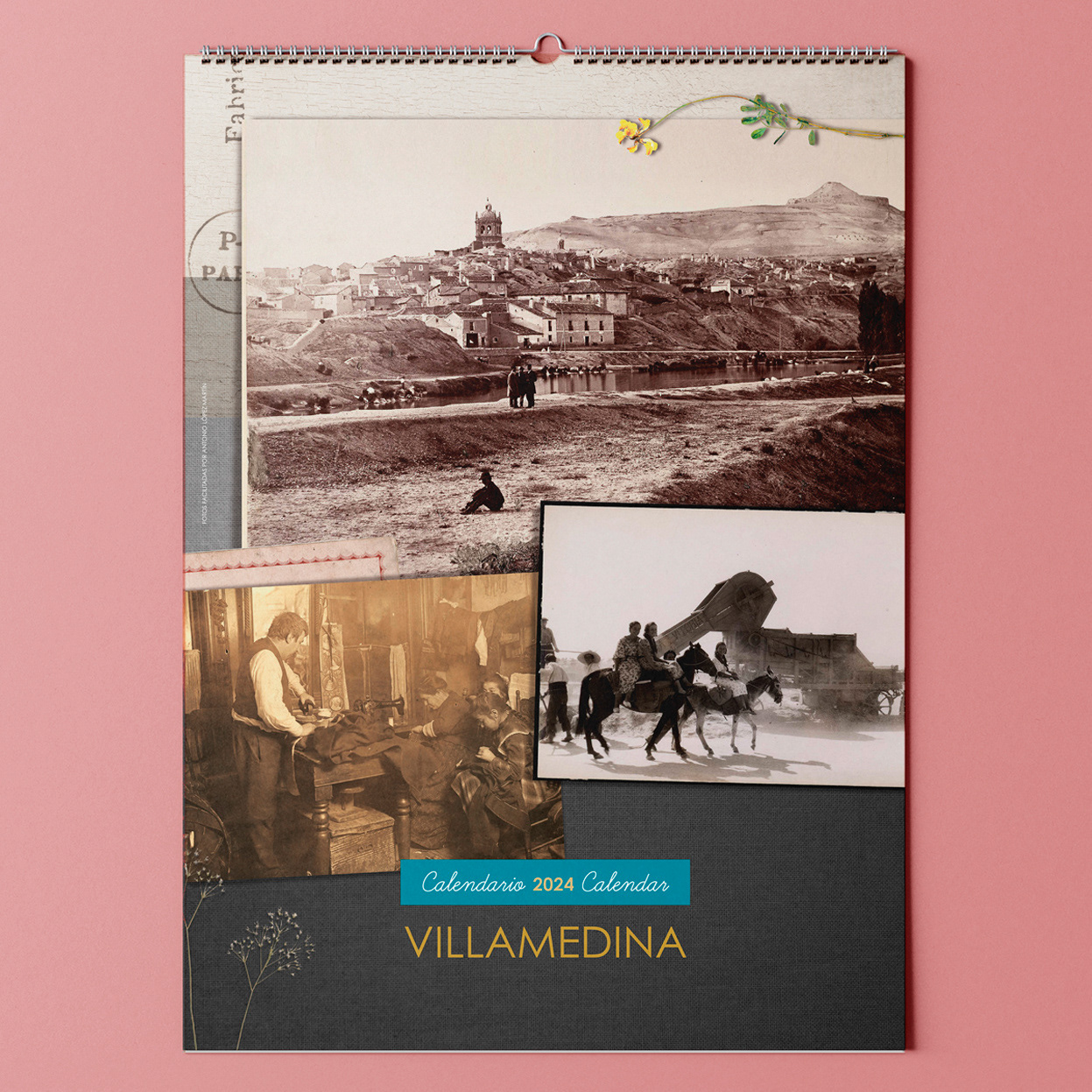 Estos calendarios de fotografías antiguas del pueblo ficticio Villamedina se incluyen como ejemplo en mi portal de diseño editorial "Nuestro Ayer". En este portal ofrezco a empresas, ayuntamientos, colegios, clubs deportivos, etc. la posibilidad de encargar su propio calendario de pared personalizado, a base de fotografías y documentos antiguos.