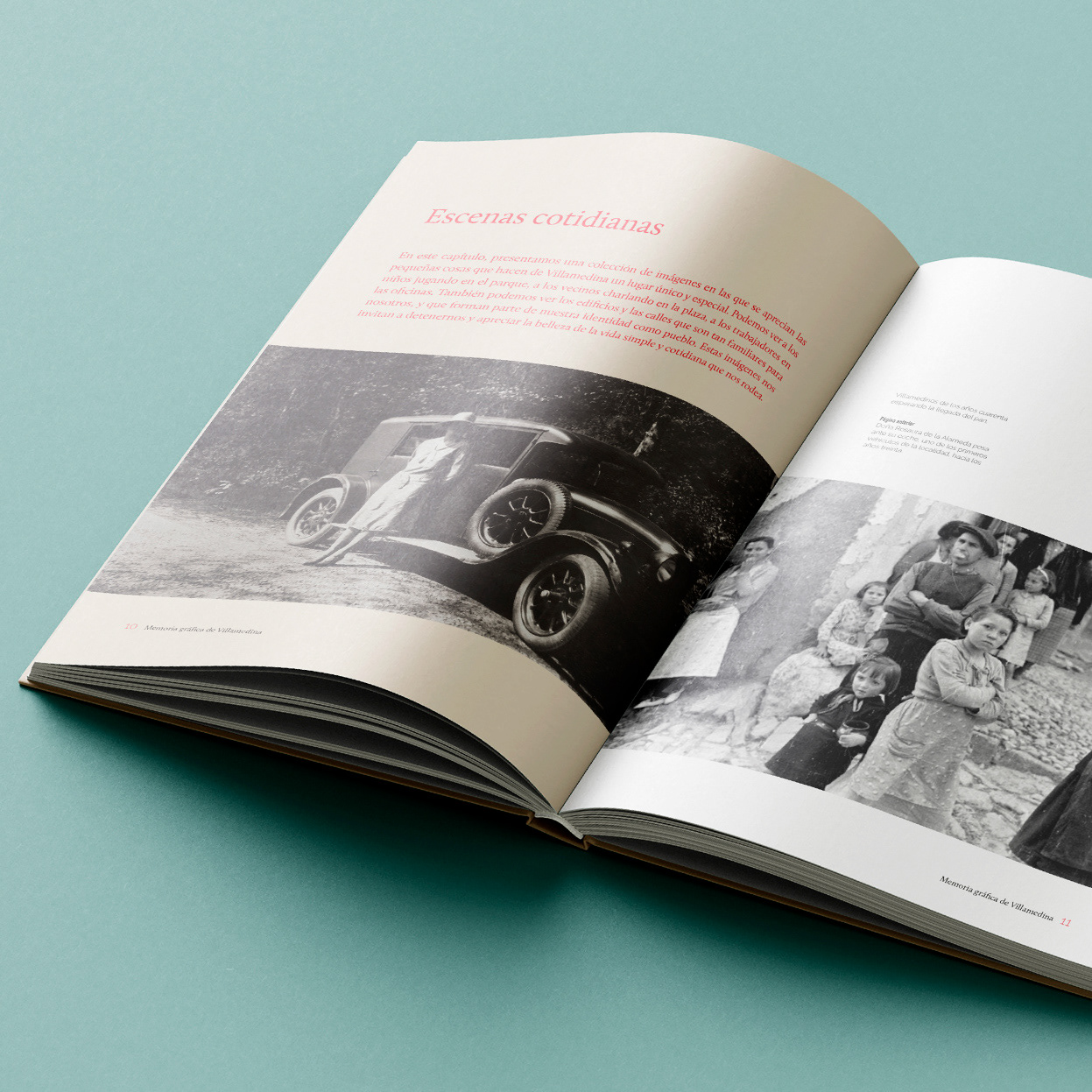 Este libro de fotografía para el ficticio Ayuntamiento de Villamedina es un proyecto incluido a modo de ejemplo en mi portal de diseño editorial "Nuestro Ayer". En este portal ofrezco a empresas, ayuntamientos, colegios, clubs deportivos, etc. la posibilidad de encargar su propio libro de memoria gráfica, totalmente personalizado, a base de fotografías y documentos antiguos.